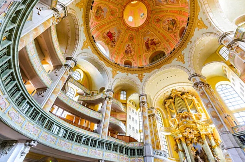 Ich nehme Sie mit auf einen Spaziergang zur prächtigen Frauenkirche, die nach ihrer Zerstörung im Zweiten Weltkrieg wie ein Phönix aus der Asche wiederauferstanden ist.
